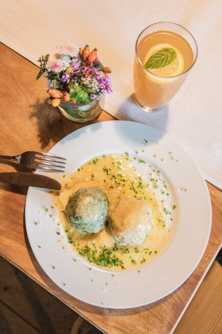 Südtiroler Knödel sind nicht nur unfassbar lecker, sie haben auch eine lange Tradition und sind von den Speisekarten der Gasthäuser nicht wegzudenken. Ein besonderes Highlight ist ein Knödelkurs bei Bäuerin Martha im Zmailer Hof auf 1.094 Metern oberhalb von Schenna – eine traumhafte Aussicht inklusive. Im Kurs erfahrt ihr nicht nur, wie die traditionellen Knödel zubereitet werden, sondern bekommt auch wertvolle Tipps und Tricks aus erster Hand.