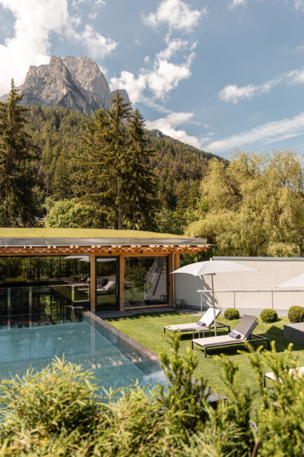 Nicht zu vergessen der Wellnessbereich mit einem hellen, hölzernen Badehaus und einem Pool, der einen Blick auf das beeindruckende Schlernmassiv bietet. Das Sensoria Dolomites ist ein Ort der Ruhe, an dem man Energie tanken und sich vom Alltagsstress lösen kann. Mehr über das Hotel könnt ihr in unserem Artikel lesen!